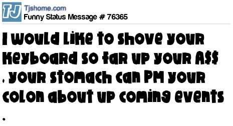 X is I would like to shove your keyboard so far up your A$$ , your stomach can PM your colon about up coming events .