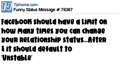 - # 100869 Facebook should have a limit on how many times you can change your relationship status - after three times it should default to unstable