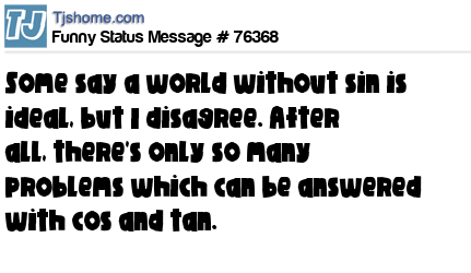 X Some say a world without sin is ideal, but I disagree. After all, there's only so many problems which can be answered with cos and tan.