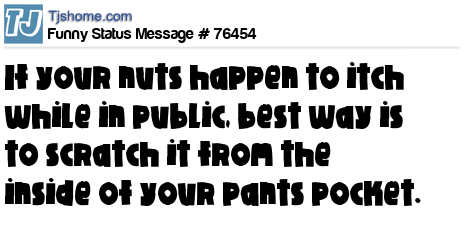 X If your nuts happen to itch while in public, best way is to scratch it from the inside of your pants pocket.