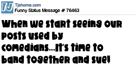 X is When we start seeing our posts used by comedians...It's time to band together and sue!