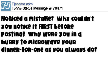 X is Noticed a mistake? Why couldn't you notice it FIRST before posting? Why were you in a hurry to microwave your dinner-for-one as you always do?