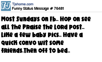 X is Most Sundays on Fb.. Hop on see all the Praise the Lord post.. Like a few baby pics.. Have a quick convo wit some friends.Then off to bed..