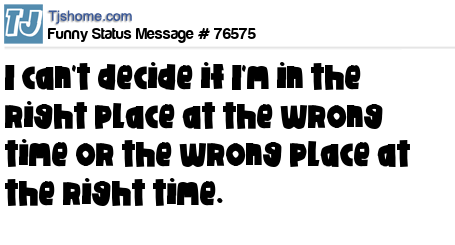 X  I can't decide if I'm in the right place at the wrong time or the wrong place at the right time.
