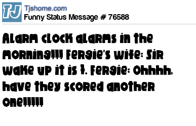 X is Alarm clock alarms in the morning!!! Fergie's wife: Sir wake up it is 7. Fergie: Ohhhh, have they scored another one!!!!!