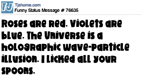 X Roses are red. Violets are blue. The Universe is a holographic wave-particle illusion. I licked all your spoons.