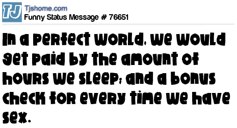X In a perfect world, we would get paid by the amount of hours we sleep; and a bonus check for every time we have sex.