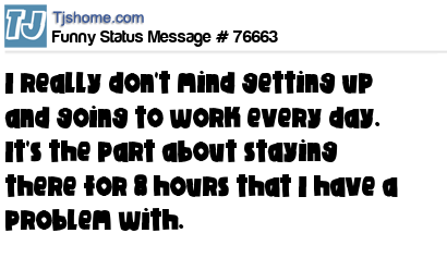 X is I really don't mind getting up and going to work every day. It's the part about staying there for 8 hours that I have a problem with.