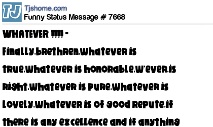 X says WHATEVER !!!! - Finally,brethren,whatever is true,whatever is honorable,w'ever,is right,whatever is pure,whatever is lovely,whatever is of good repute,if there is any excellence and if anything worthy of praise,let your mind dwell on these things.Phil 4:8