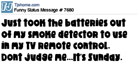 - # 105815 Just took the batteries out of my smoke detector to use in my TV remote control. Dont judge me.