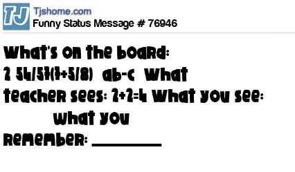 - # 80679 What's on the board: 2•54/57(7+5/8)²•ab-c³ What teacher sees: 2+2=4 What you see: すきうせちし what you remember: ______.