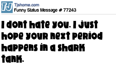 - # 95519 I don't hate you. I just hope your next period happens in a shark tank! (".)