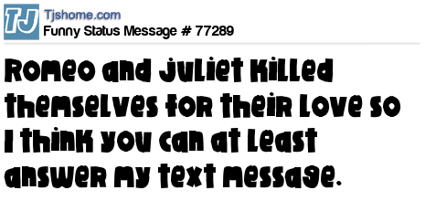 X says Romeo and juliet killed themselves for their love so I think you can at least answer my text message.