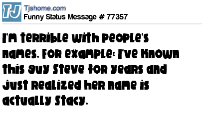 X I'm terrible with people's names. For example: I've known this guy Steve for years and just realized her name is actually Stacy.