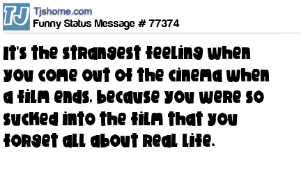 X It's the strangest feeling when you come out of the cinema when a film ends, because you were so sucked into the film that you forget all about real life.