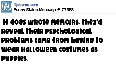 - # 77567 If dogs wrote memoirs, they'd reveal their psychological problems came from having to wear Halloween costumes as puppies.