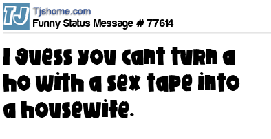 X is I guess you cant turn a ho with a sex tape into a housewife.