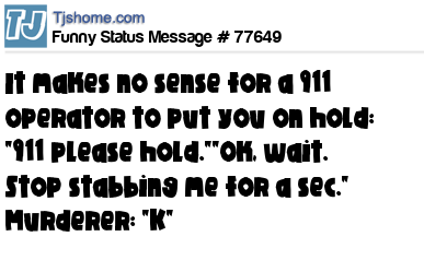 X It makes no sense for a 911 operator to put you on hold: "911 please hold.""Ok, wait. Stop stabbing me for a sec." Murderer: "K"