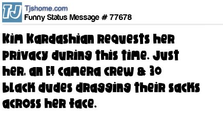 X is Kim Kardashian requests her privacy during this time. Just her, an E! camera crew & 30 black dudes dragging their sacks across her face.