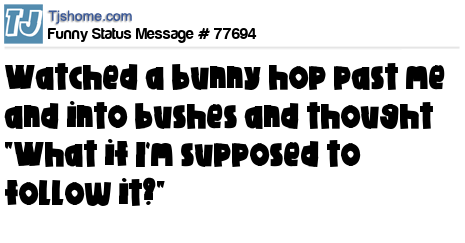 X watched a bunny hop past me and into bushes and thought "What if I'm supposed to follow it?"