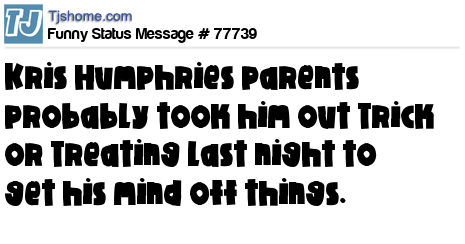 X says Kris Humphries parents probably took him out Trick or Treating last night to get his mind off things.