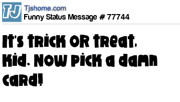- # 139749 I taught my neighbors kid how to trick or treat online, hopefully she puts her mothers credit card back!