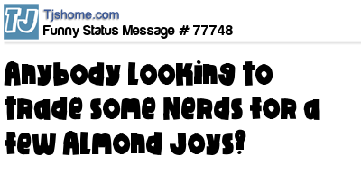 X Anybody looking to trade some Nerds for a few Almond Joys?