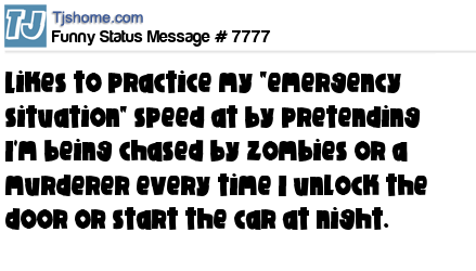 X Likes to practice my "emergency situation" speed at by pretending I'm being chased by zombies or a murderer every time I unlock the door or start the car at night.