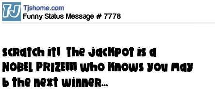 X ββββββββββββββββ scratch it! The jackpot is a NOBEL PRIZE!!! who knows you may b the next winnerβ¦