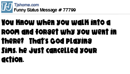 X You know when you walk into a room and forget why you went in there? That's God playing Sims, he just cancelled your action.