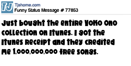 X has Just bought the entire Yoko Ono collection on Itunes. I got the Itunes receipt and they credited me 1,000,000,000 free songs.