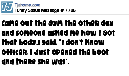 X is Came out the gym the other day and someone asked me how I got that body.I said, "I don't know officer, I just opened the boot and there she was".