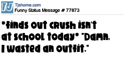 X is *finds out crush isn't at school today* "Damn, I wasted an outfit."