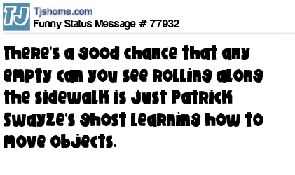 X There's a good chance that any empty can you see rolling along the sidewalk is just Patrick Swayze's ghost learning how to move objects.