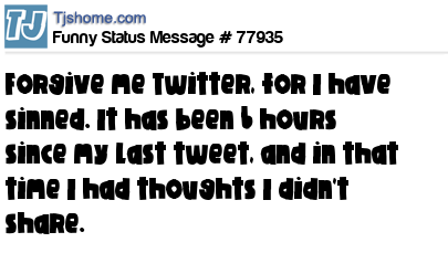 X Forgive me Twitter, for I have sinned. It has been 6 hours since my last tweet, and in that time I had thoughts I didn't share.