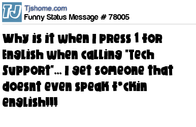 X is Why is it when I press 1 for English when calling "Tech Support"... I get someone that doesnt even speak f*ckin english!!!