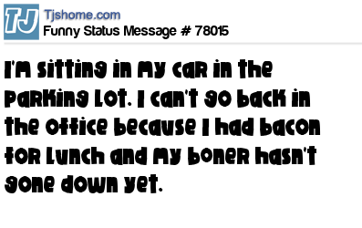 X is I'm sitting in my car in the parking lot. I can't go back in the office because I had bacon for lunch and my b0ner hasn't gone down yet.