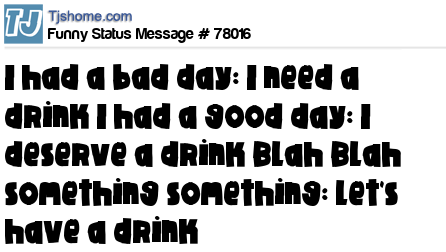 X I had a bad day: I need a drink I had a good day: I deserve a drink Blah Blah something something: Let's have a drink