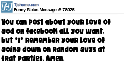 X You can post about your love of god on facebook all you want, but *I* remember your love of going down on random guys at frat parties. Amen.