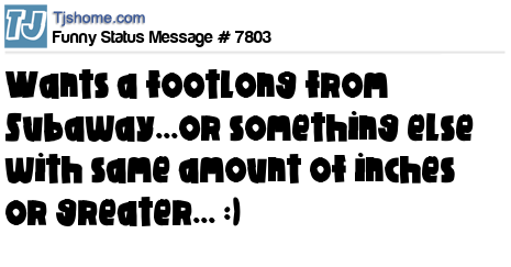 X wants a footlong from Subaway...or something else with same amount of inches or greater... :)