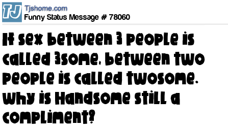 - # 72483 If sex between 3 people is called a Threesome and sex between 2 people is called a Twosome... Why is Handsome still a compliment? ;)