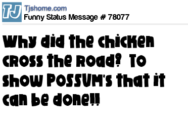 X why did the chicken cross the road? To show POSSUM's that it can be done!!