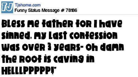 X is Bless me father for I have sinned, my last confession was over 3 years- oh damn the roof is caving in HELLLPPPPP!"