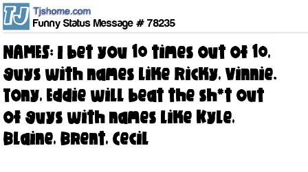 X NAMES: I bet you 10 times out of 10, guys with names like Ricky, Vinnie. Tony, Eddie will beat the sh*t out of guys with names like Kyle, Blaine, Brent, Cecil