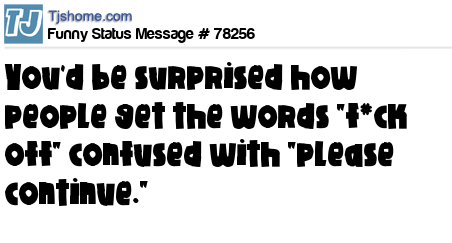 X You'd be surprised how people get the words "f*ck off" confused with "please continue."
