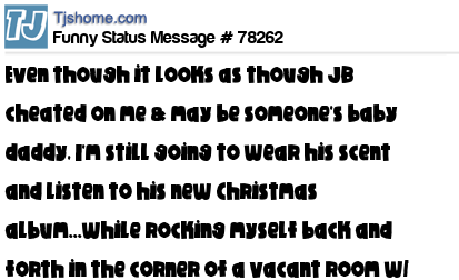X says Even though it looks as though JB cheated on me & may be someone's baby daddy, I'm still going to wear his scent and listen to his new Christmas album...while rocking myself back and forth in the corner of a vacant room w/ nothing but a bottle of Grey G