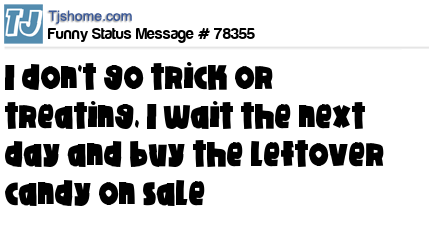 X i don't go trick or treating, I wait the next day and buy the leftover candy on sale
