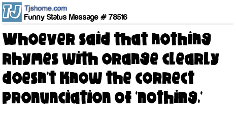 X Whoever said that nothing rhymes with orange clearly doesn't know the correct pronunciation of 'nothing,'