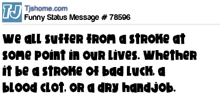 X says We all suffer from a stroke at some point in our lives. Whether it be a stroke of bad luck, a blood clot, or a dry handjob.