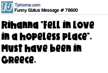 X says Rihanna "Fell in love in a hopeless place". Must have been in Greece.
